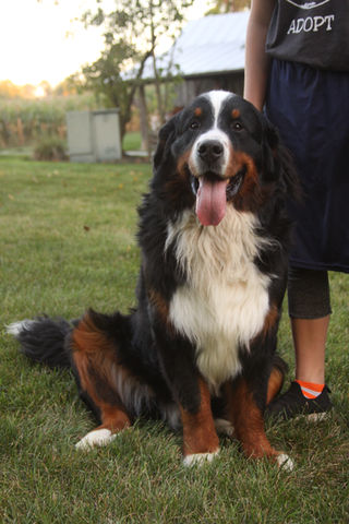 This is Miles. He is AKC registered and could have been better named Teddy Bear or Baby. He really is a giant baby. He begs for attention and touch from everyone he sees. He is very friendly and loves to run and romp. He is sensitive and delightfully natured. He is around 95-100 lbs and has a beautiful, long haired coat.